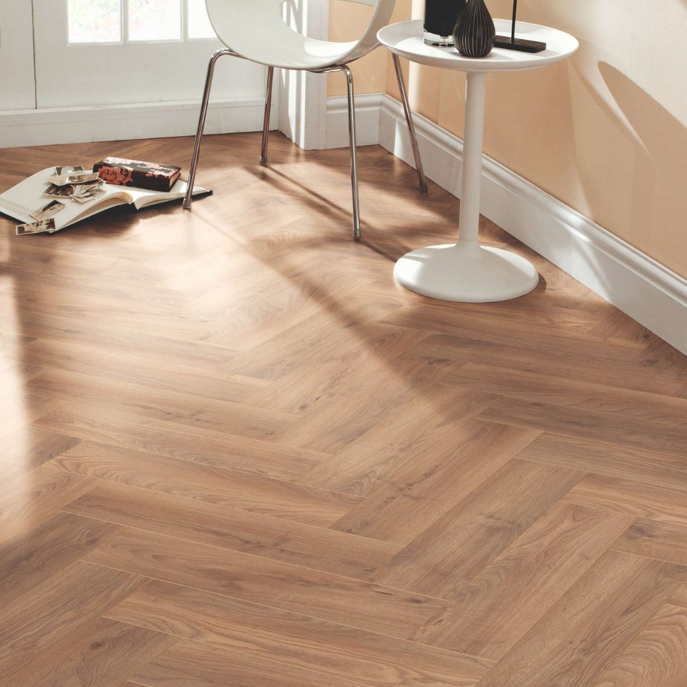 Sàn gỗ Krono Original 5947 – Historic Oak mang tông màu nâu gỗ cổ điển với sắc độ trầm ấm, gợi cảm giác sang trọng và chiều sâu cho không gian. Bề mặt vân HO được hoàn thiện sắc nét với các đường vân tự nhiên, tái hiện vẻ đẹp mộc mạc nhưng tinh tế của gỗ thật. Thiết kế xương cá (Herringbone) đặc trưng cùng độ dày 8mm tạo nên điểm nhấn thẩm mỹ nổi bật, giúp không gian trở nên ấn tượng, có chiều sâu và phù hợp với các phong cách nội thất cổ điển, vintage hoặc hiện đại cao cấp.